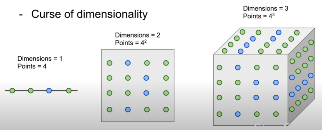 또한 KNN같은 경우 디멘션이 늘어날수록 필요한 데이터 혹은 픽셀의 갯수가 기하급수적으로 늘어난다.