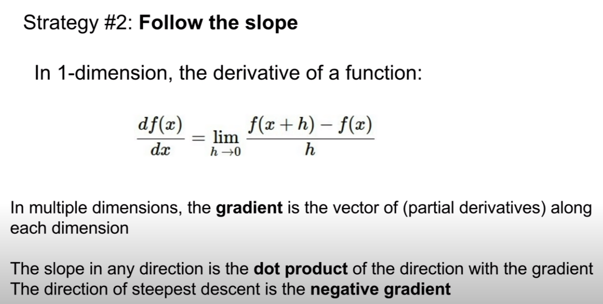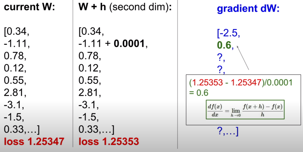 우리에겐 라이프니츠와 뉴턴이 개발해낸 미적분이라는 방법이 있기에 단순히 손실함수를 W에 대해 편미분을 진행하면 손쉽게 dW 즉, 기울기의 경사를 구할 수 있게 된다. 이렇게 구한 기울기를 analytical gradient 라고 한다.